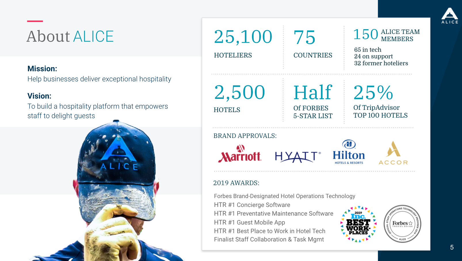 The deck used by the enterprise, fields sales, marketing, and customer success team to communicate the who, what, and why of ALICE